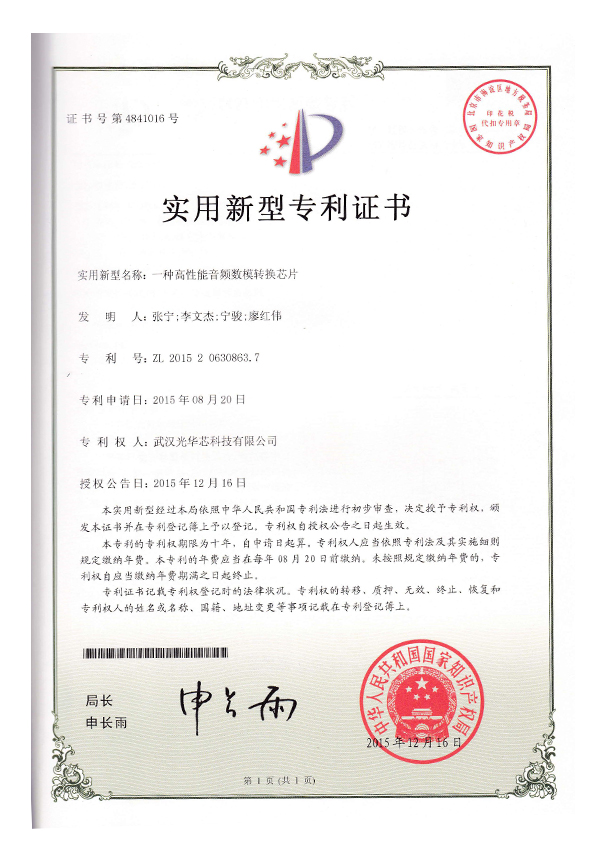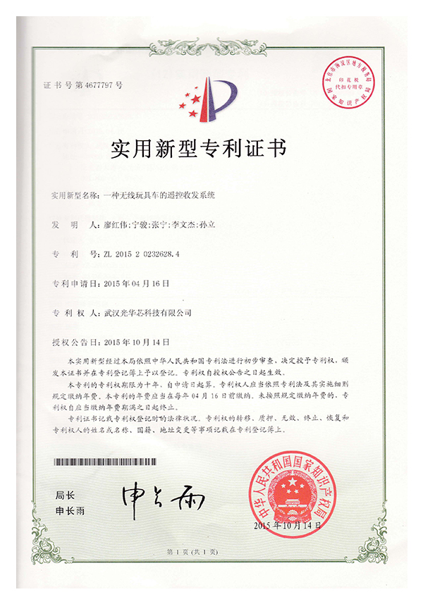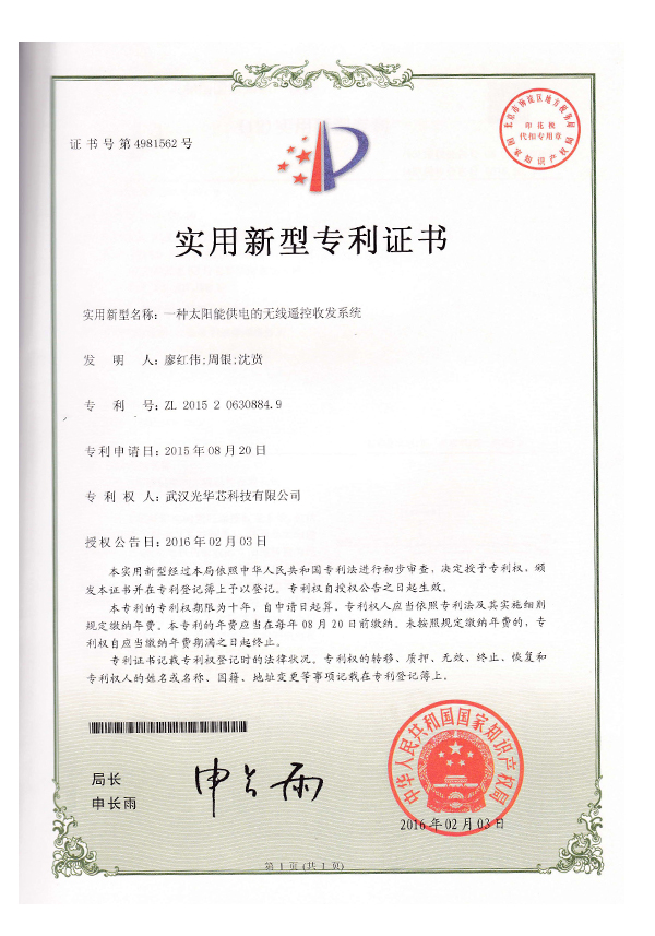 Utility model patent certificate