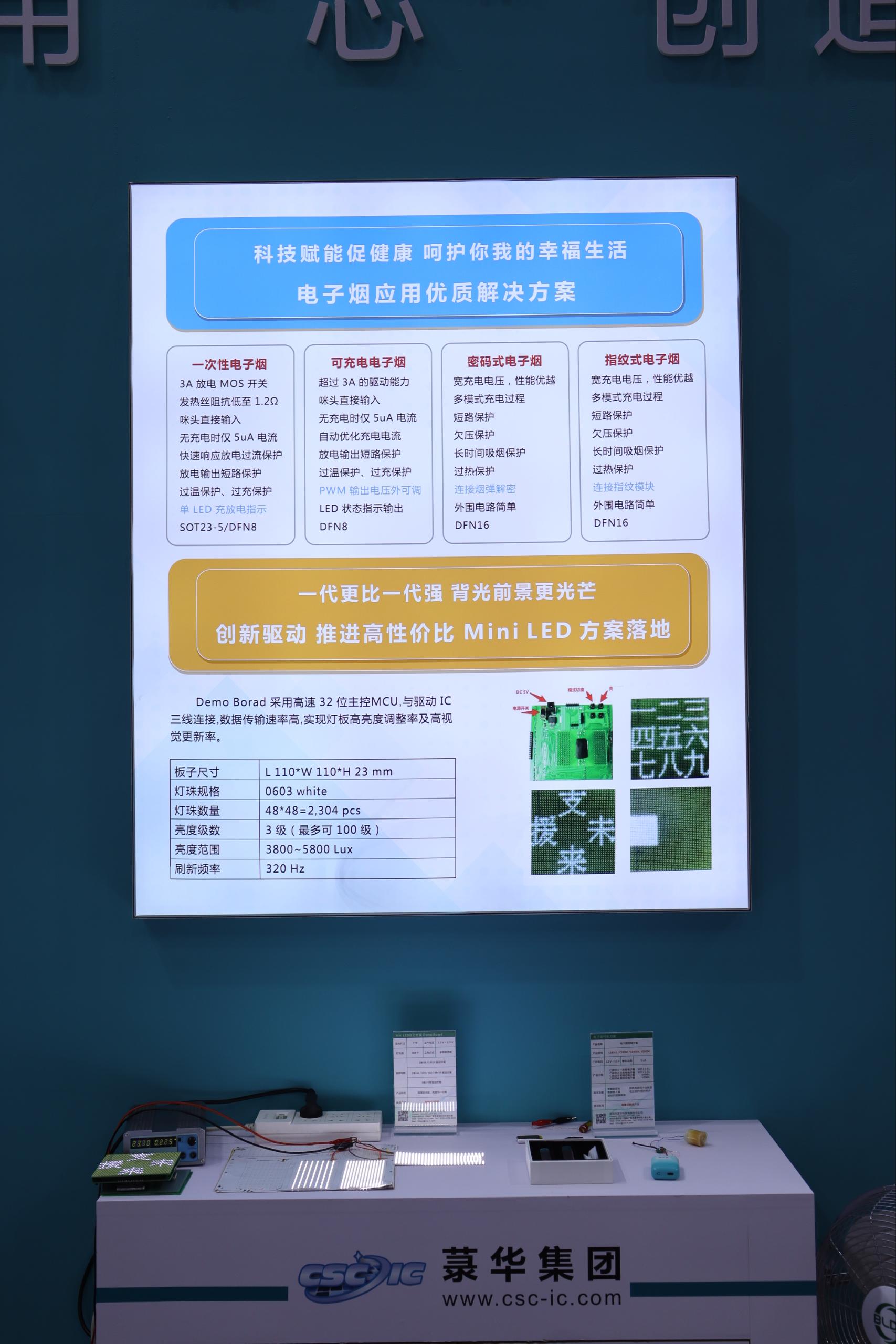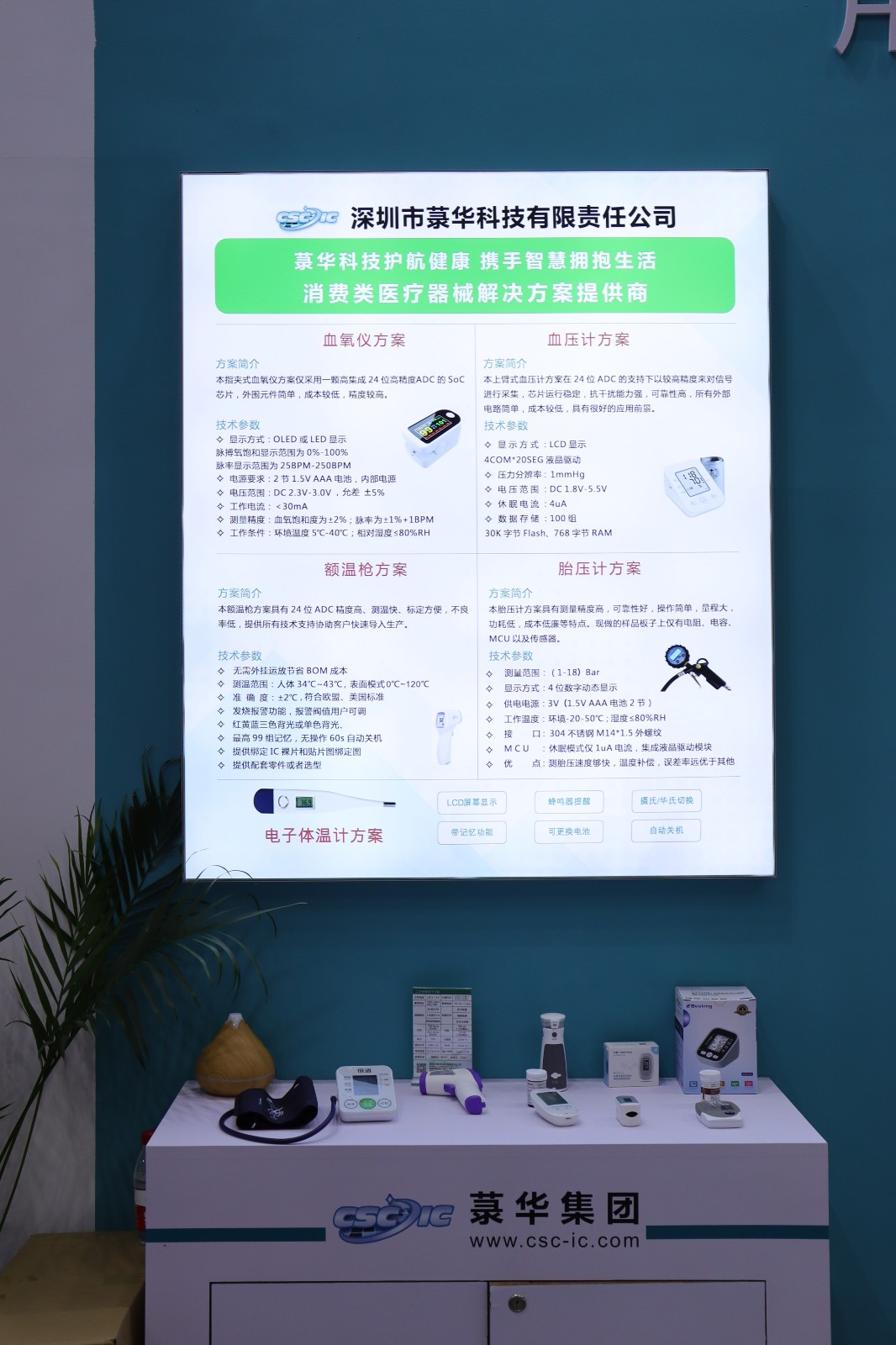 In this exhibition, Luhua Group displayed 5 series of products, including small home appliance Touch MCU, audio chip, Mini LED and e-cigarette, BLDC, and consumer medical device solutions, among which the main products are capacitive touch chip and audio series chip. Touch series chip using COMS process manufacturing, built-in voltage and shake circuit, high reliability, high sensitivity, ultra-low power consumption, wide working voltage, designed to replace the light sensor and traditional button switch, product application have air fryer, humidifier, purifier, atomizer, car bracket, seat switch, air conditioning / car control board, alarm, TWS headphones, bracelet, watches, all kinds of intelligent lamps and lanterns, intelligent door lock, smart glasses, eye massager, electronic scale and so on. Audio series of chip products, including USB digital audio SoC, CODEC, ADC, DAC. Widely used in PC and surrounding external equipment, security, vehicle, commercial, image motor, electronic digital and other fields. As one of the first professional audio chip design enterprises in China, its research and development strength and market cultivation in the audio field has been recognized by many domestic and foreign customers.