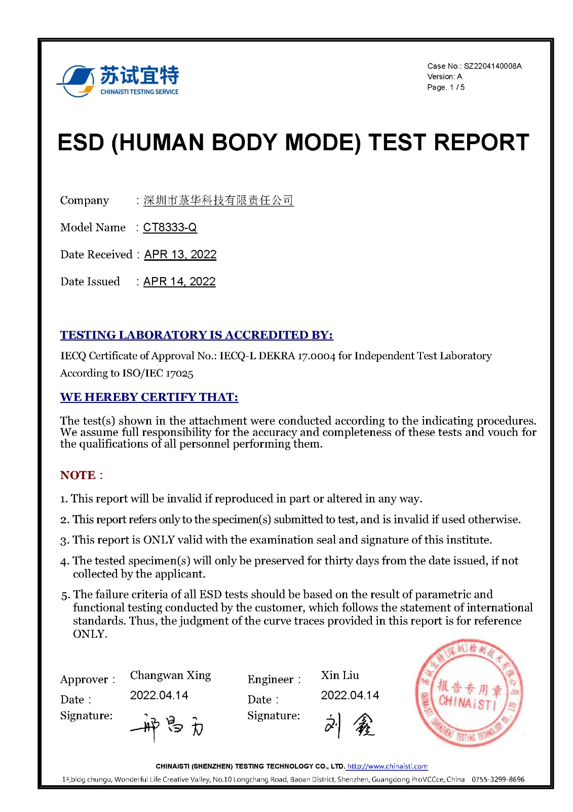 CT8333-Q_ DFN4_ ESD test report