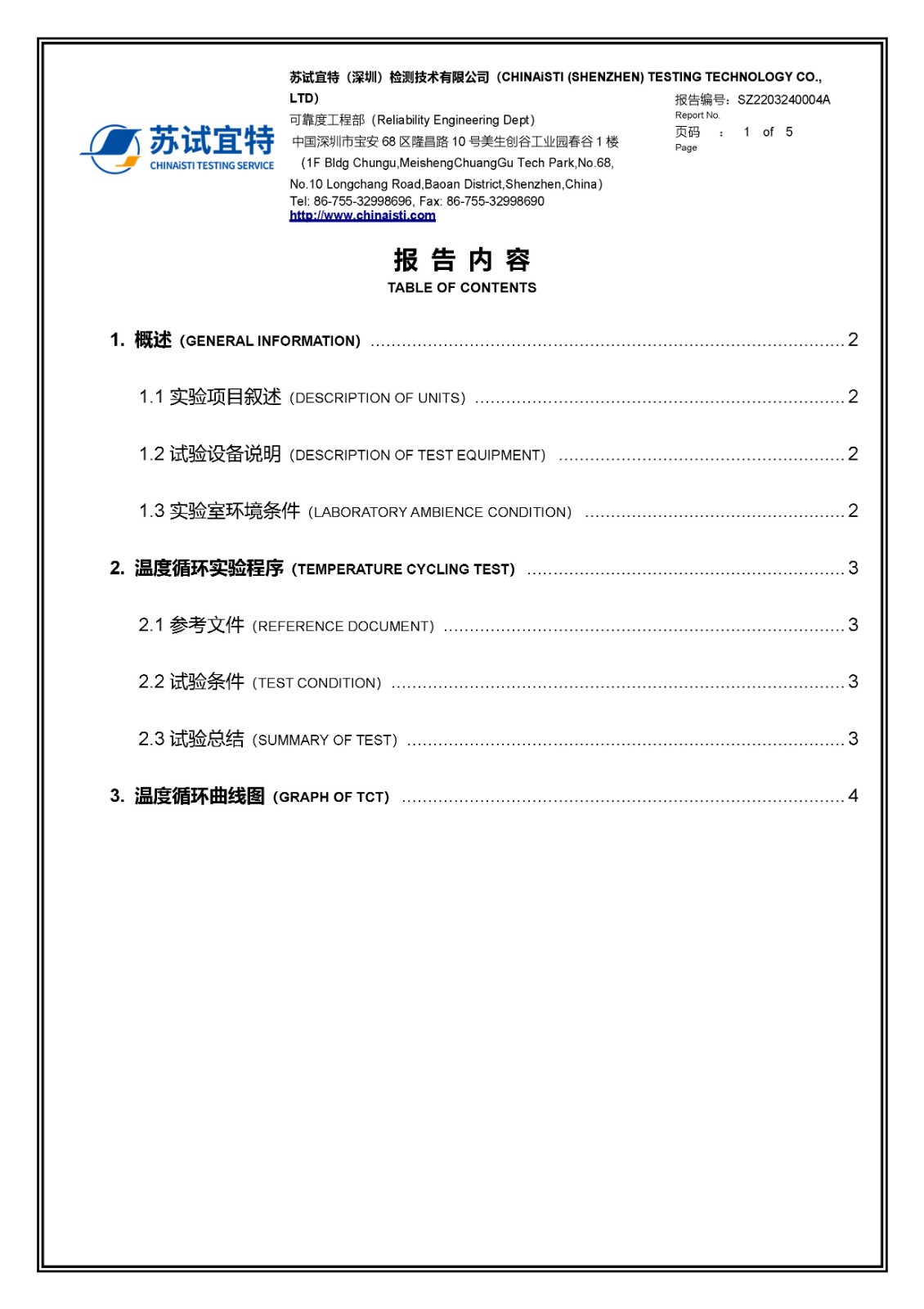 > Temperature and Humidity Cycle (TCT)