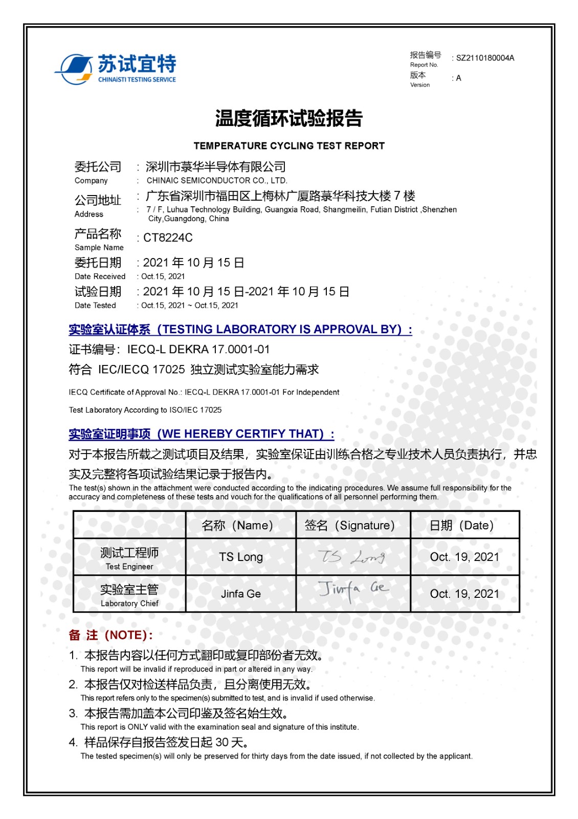 CT8224C_ Temperature cycling test report