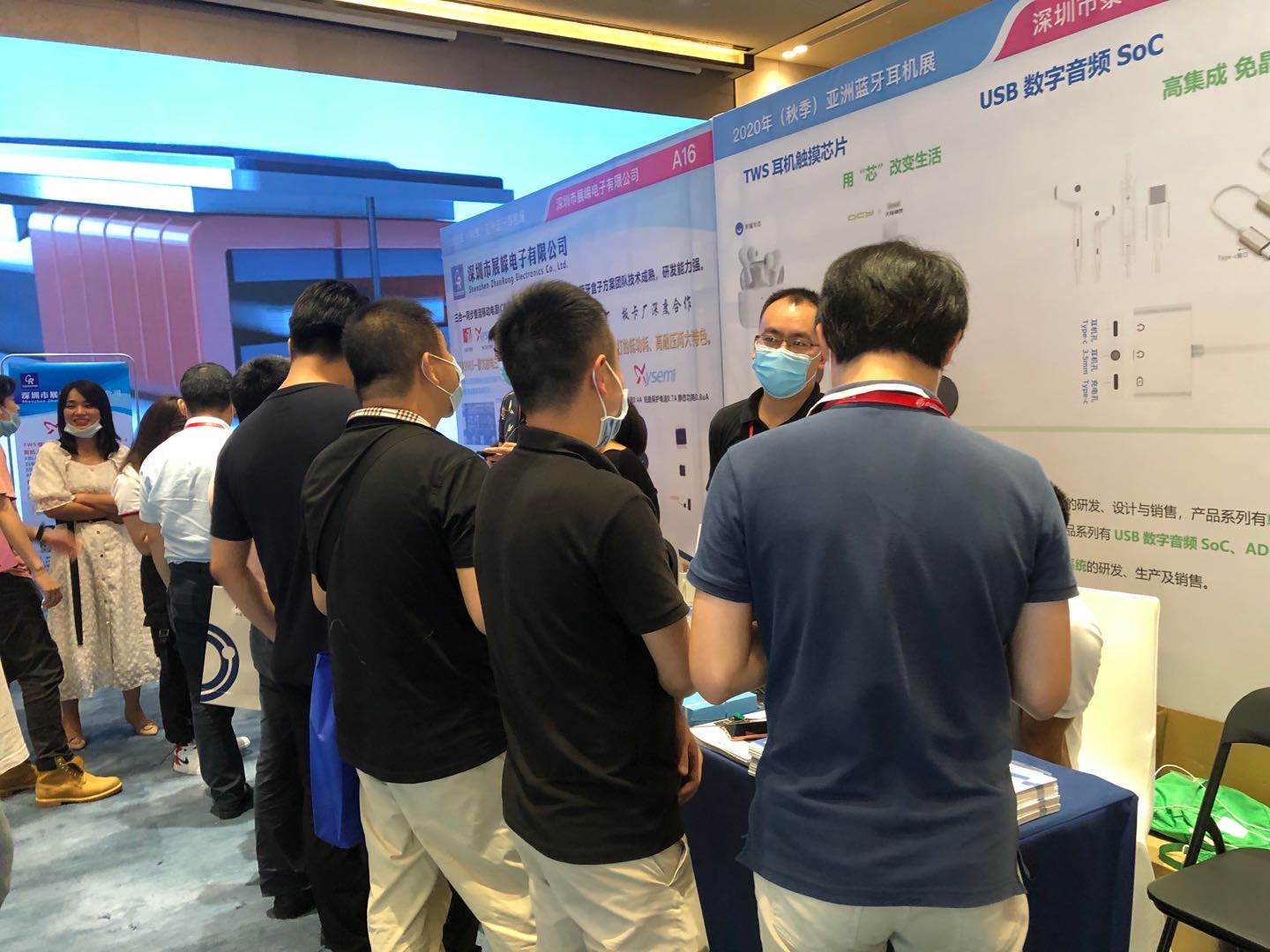 2020年8月20日,公司應邀參加在深圳科興科學園舉辦的,2020年秋季亞洲藍牙耳機展。我們主要展示了TWS耳機觸摸芯片,USB數(shù)字音頻SoC兩大系列產(chǎn)品。我們的觸摸芯片以高可靠性,內部去抖電路,性能穩(wěn)定,低功耗,高靈敏,抗干擾,靈敏度自校準,休眠喚醒響應迅速,輸出應用模式多樣,按鍵輸出復位時間可選;我們的USB數(shù)字音頻SoC系列產(chǎn)品以高性能,高集成度,低功耗,高性價比,性能處于同行業(yè)的領先水平,引起了很多參展者的強烈興趣和廣泛關注。尤其是我們自主設計TWS耳機觸摸芯片,以其超高的性價比,成為本次展會備受矚目的焦點。