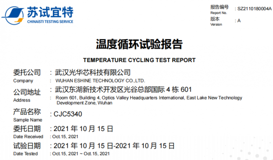 首頁 > 技術支持 > 第三方測試報告> 高低溫測試(L/HTSL)